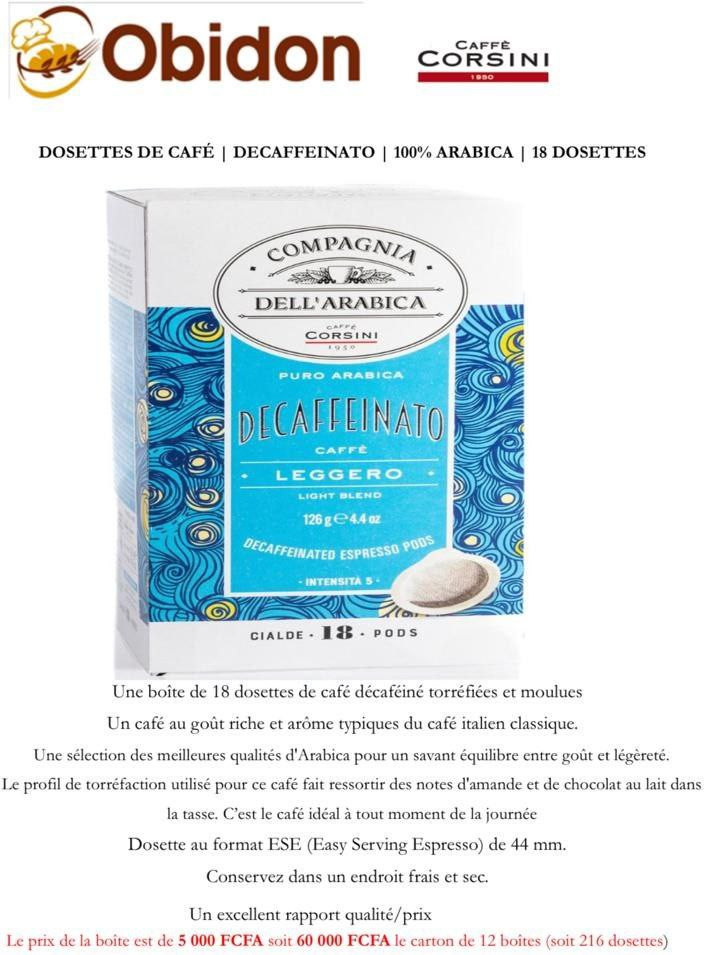 Une boîte de 18 dosettes de café décaféiné et moulues.