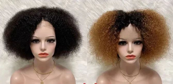 Perruque afro bouclée frontale en forme de T