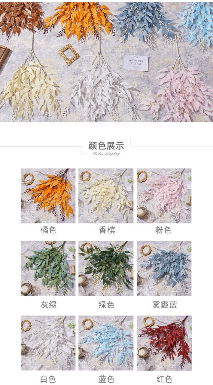 Simulation de bouquet de feuilles de saule, art floral de mariage, salle de mariage, décoration douce d'hôtel, sérigraphie en tissu, simulation de fleur