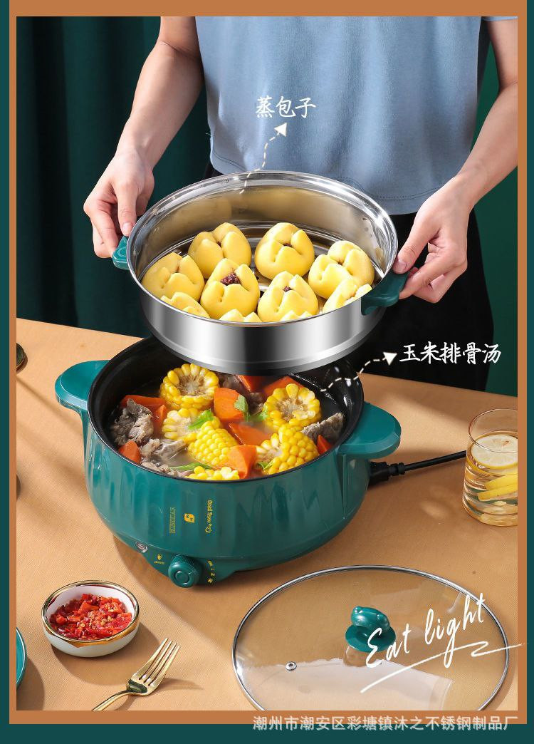 Marmite électrique pour dortoir étudiant, marmite tout-en-un pour cuire à la vapeur, frire et sauter, marmite antiadhésive, marmite électrique à emporter, cuiseur vapeur double couche