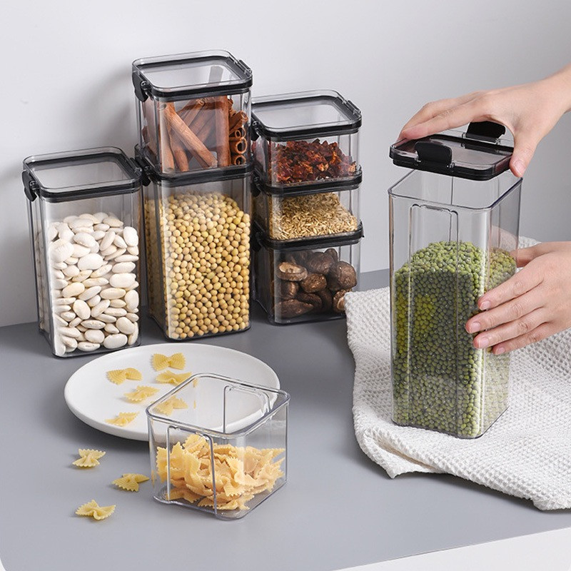 1.3L - Boîte de rangement en plastique scellée transparente carrée épaissie - boîte de stockage de fruits secs et de céréales - boîte de nourriture en plastique réservoir de stockage de thé et de céréales diverses