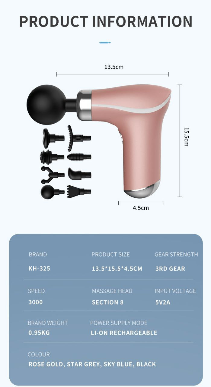 Mini pistolet électrique à huit têtes pour fascia, pistolet de massage de la taille, relaxation musculaire, masseur vibrant vertèbre cervicale