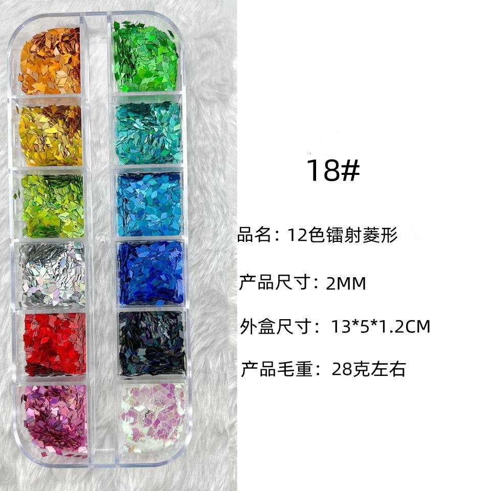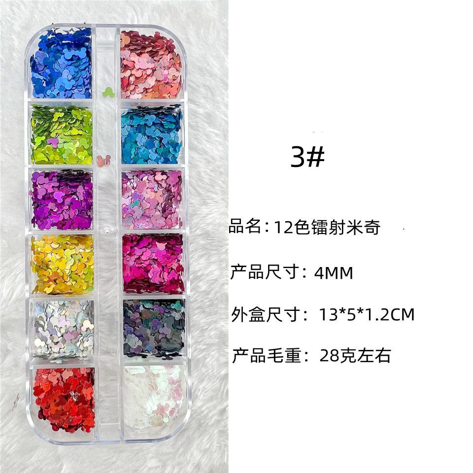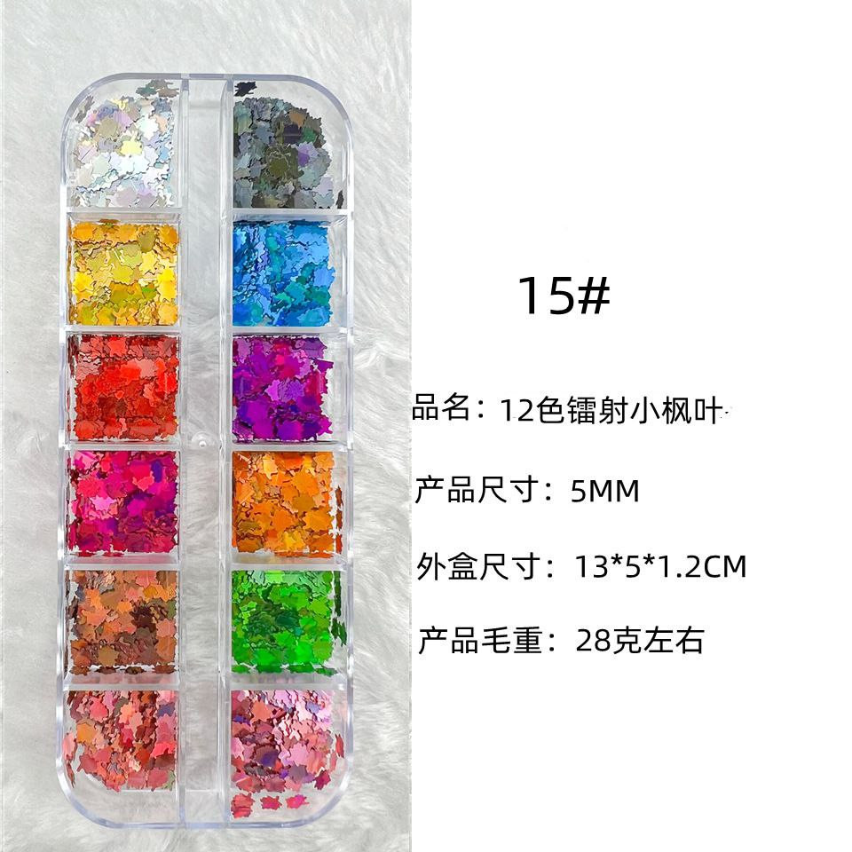 Manucure 12 cadres laser fins paillettes de forme spéciale papillon étoile à cinq branches parapluie feuille d'érable 20 accessoires pour ongles rose pailleté