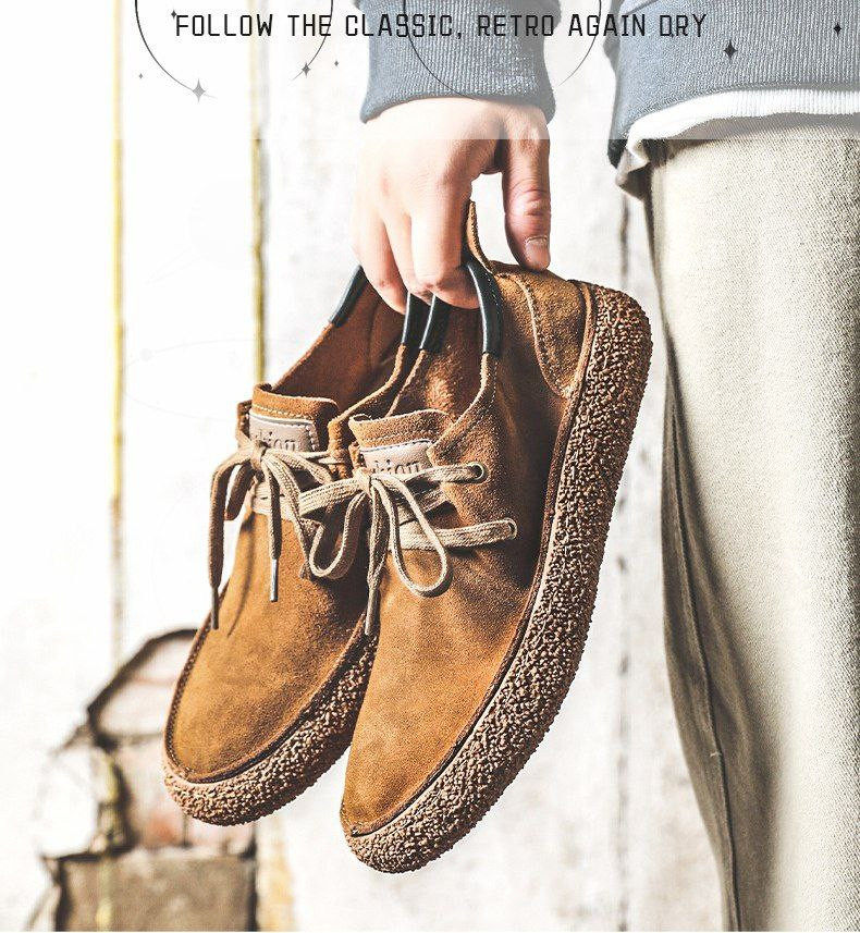 Nouvelles baskets rétro chaussures pour hommes en cuir de vache givré antidérapant plat sports de plein air et chaussures décontractée