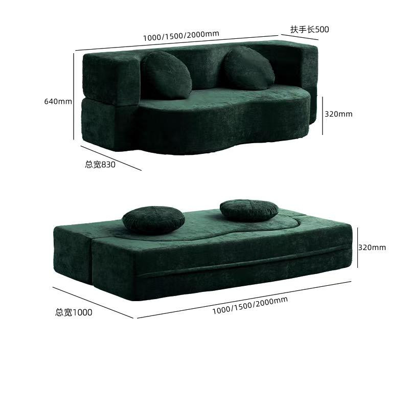 Canapé-lit en tissu antique, module pour petit appartement, salon pliable, double usage