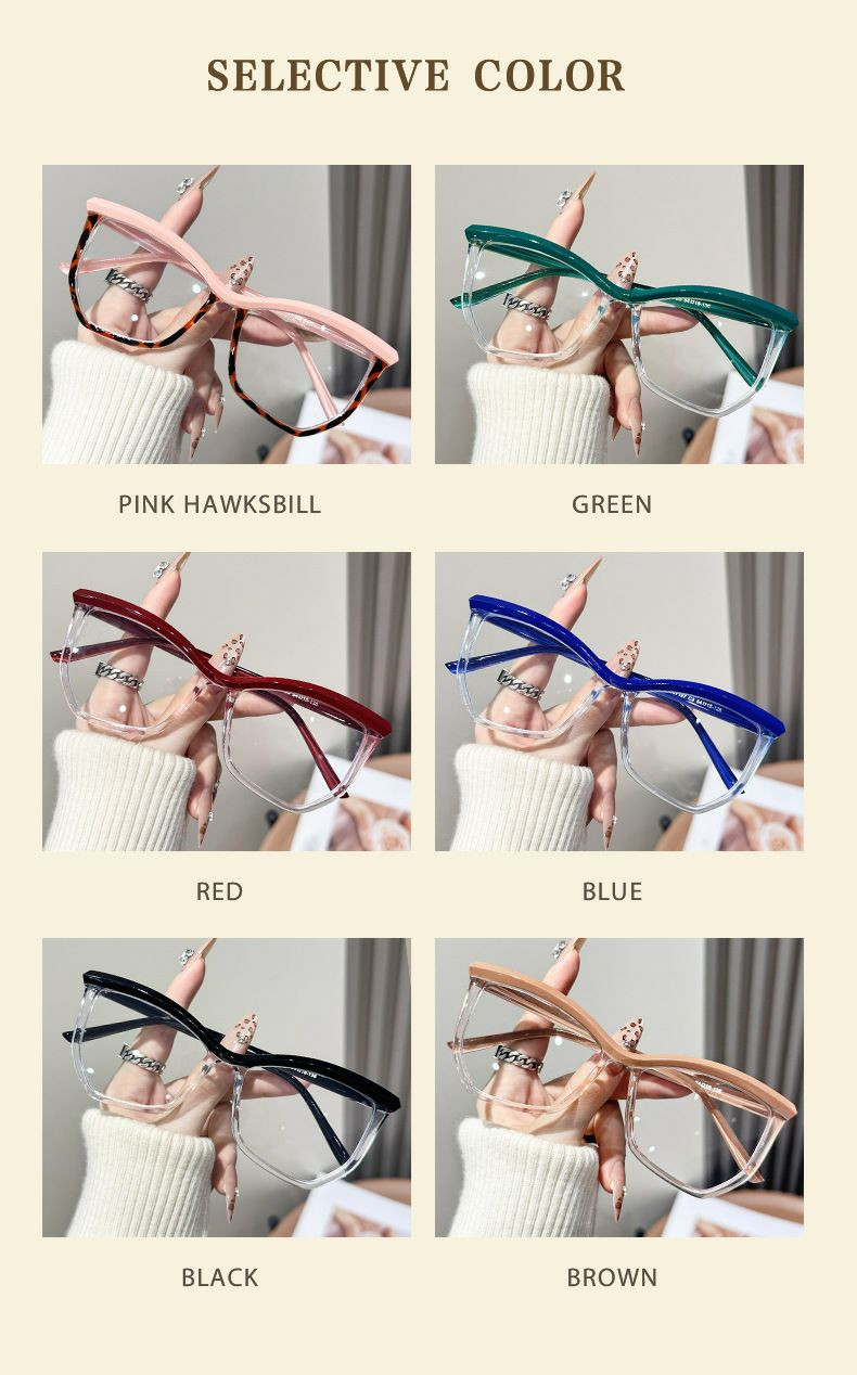 Lunettes anti-lumière bleue irrégulières avec monture œil-de-chat à sourcils du même style de célébrité d'Internet, nouveau style, lunettes unies polyvalentes et à la mode