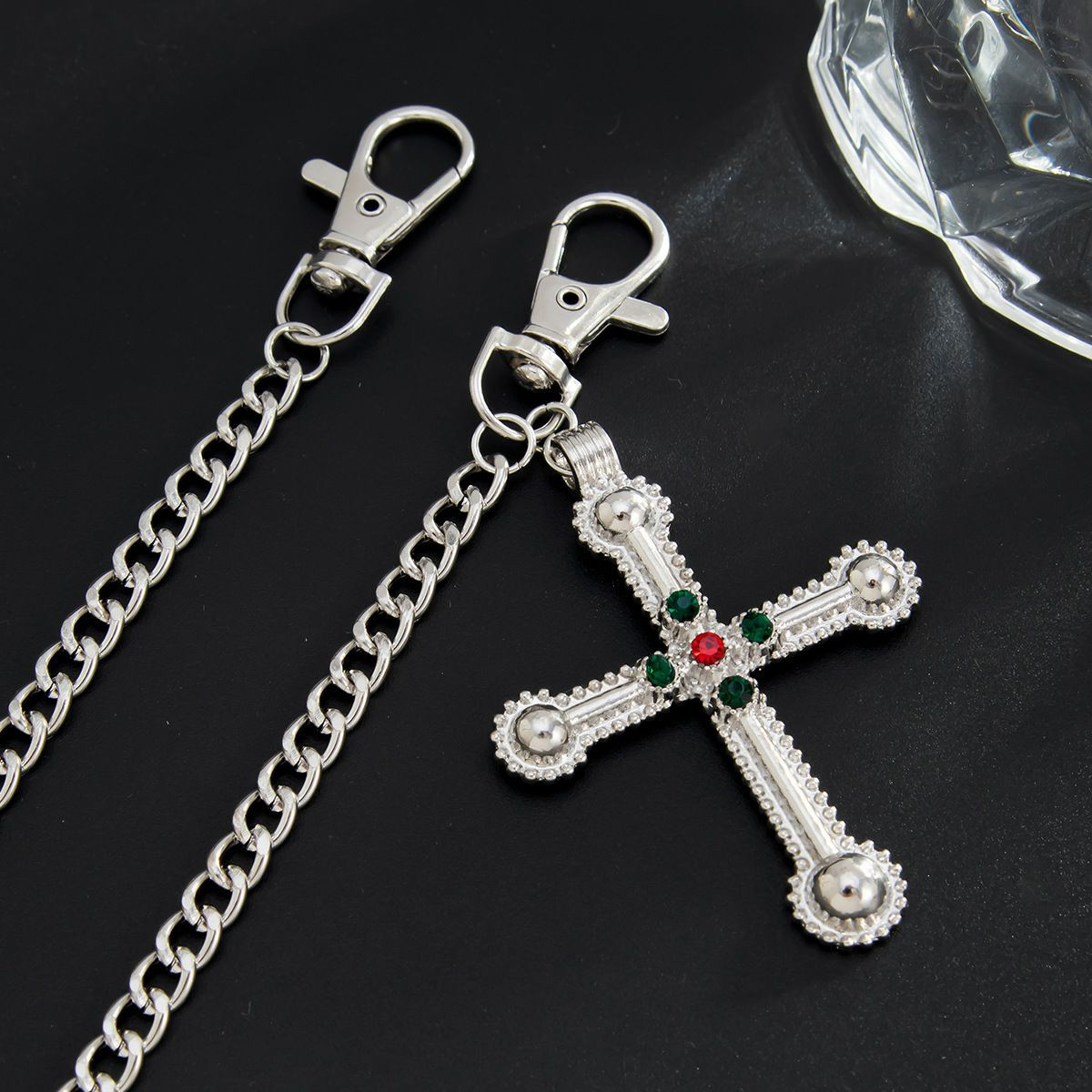 Chaîne de pantalon à pendentif grande croix exagérée européenne et américaine, chaîne suspendue pour jeans pour garçons haut de gamme, chaîne de taille simple transfrontalière pour hommes