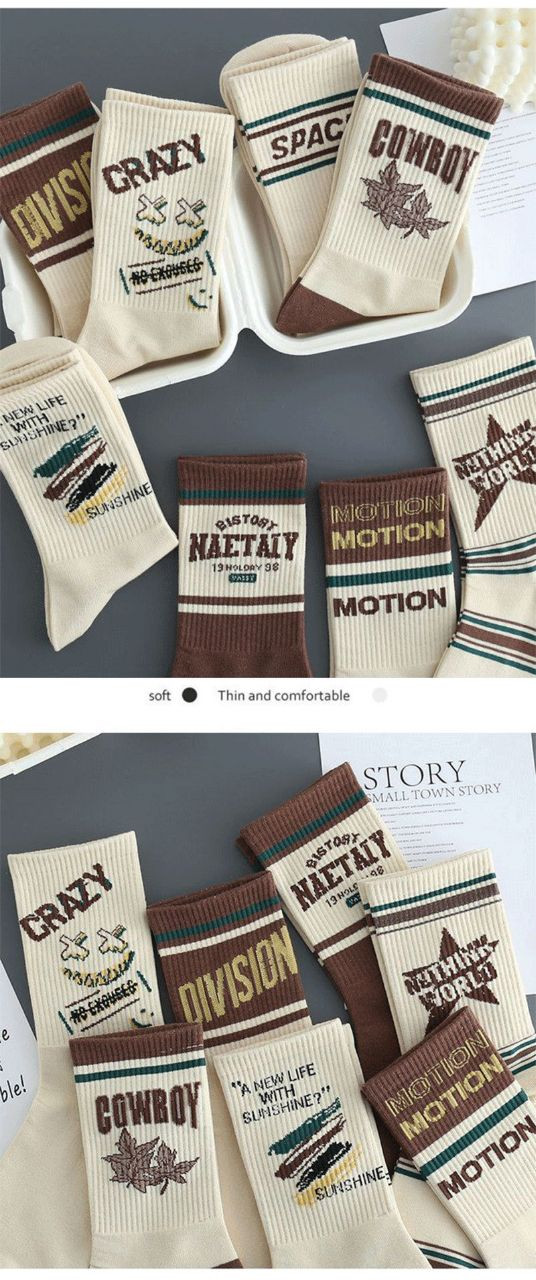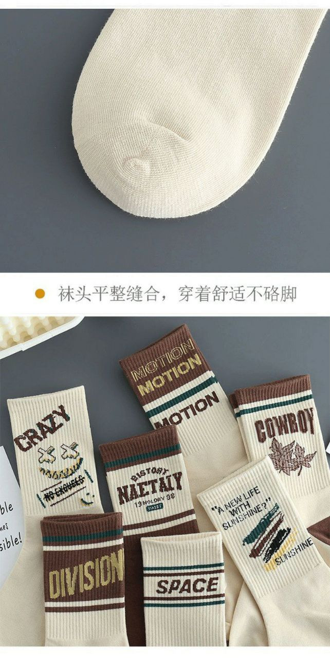 Chaussettes décontractées unisexes à imprimé lettres de style rétro.
