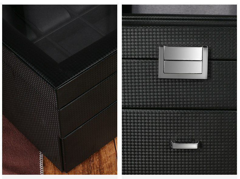 Double couche pu 24 bits boîte de rangement de montre boîte à bijoux en fibre de carbone boîte d'affichage de bracelet boîte-cadeau bracelet
