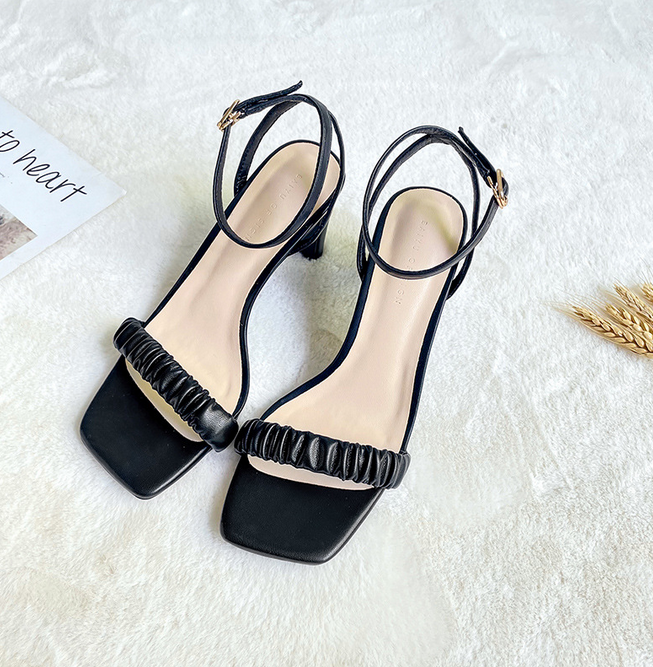 Sandales haut de gamme à talons hauts pour femmes avec ceinture - chaussures pour femmes petit talon épais bout carré - chaussures à la mode