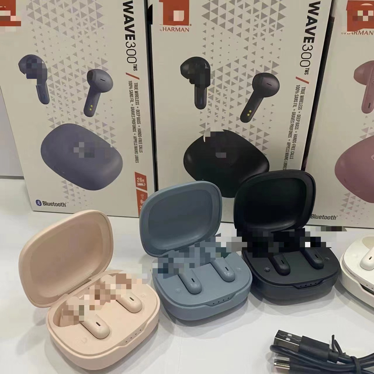 Ecouteurs Bluetooth JBL WAVE300 sans fil avec fonction anti-bruit, conçus pour les sports et les appels téléphoniques, et adaptés à la musique
